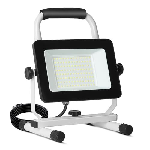 Equipped with a 10ft heavy duty cord and adjustable floodlight heads, these lights offer flexibility in positioning and reach, allowing users to target light exactly where it is needed. The 5000K daylight color temperature provides crisp, natural light that helps reduce eye fatigue during long work sessions, making them a valuable addition to any professional or hobbyist’s toolkit.