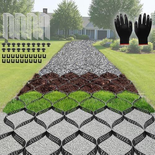 The 2″ Thick Gravel Ground Grid measuring 6.5ft x 16.5ft is ideal for homeowners, landscapers, and property managers seeking a durable solution for driveway stabilization, walkway reinforcement, or RV parking. This product is especially suited for those dealing with uneven terrain, slopes, or areas prone to gravel displacement who want a low-maintenance, long-lasting surface that can support heavy loads.