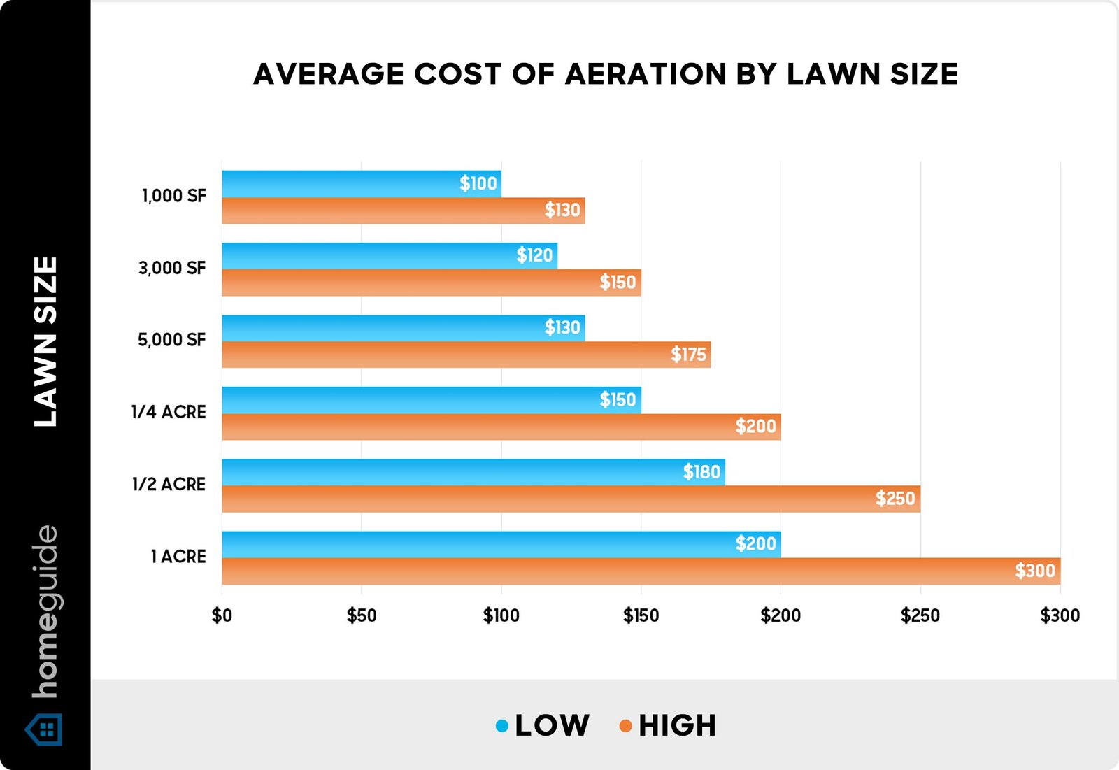 The cost per square foot depends on the aeration type and local market rates.