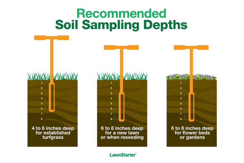 Use a soil probe or a small shovel to get the right depth. This shows the soil where grass roots grow.