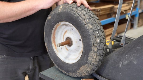 Lift the wheelbarrow so the wheel is off the ground. Spin the wheel with your hand to check if it turns freely.
