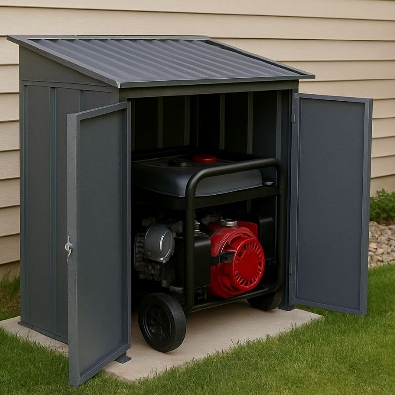 Outdoor storage is easy but needs protection from moisture. Use a waterproof coveror store under a roof. Keep the generator off the ground to stop rust and damage.