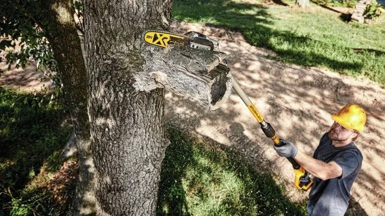 Experts use pole saws for many tree care tasks. This tool cuts branches, trims limbs, and clears hard-to-reach spots. It works well on different tree types and sizes.
